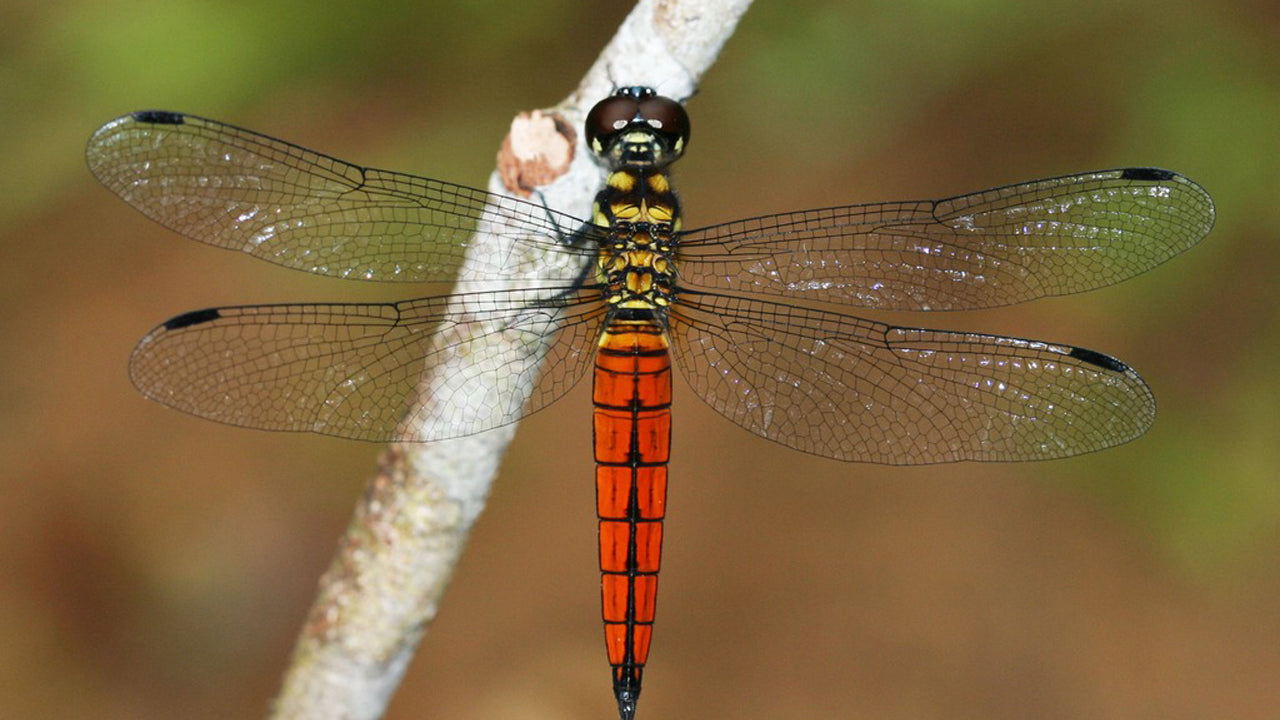 This small, orange-coloured dragonfly is one of the most common species found in the lowlands of Sri Lanka. Its distinct wing colour and pattern make it easily distinguishable from other Sri Lankan dragonflies.