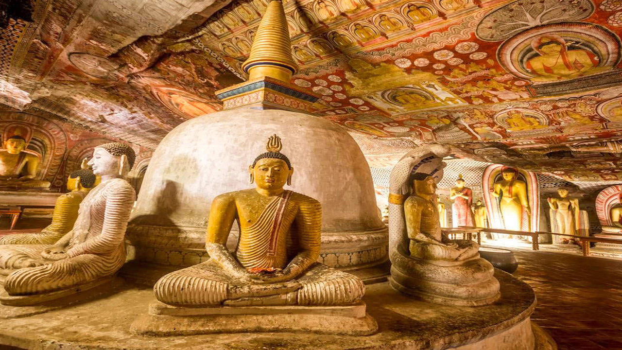 Dambulla Golden TempleDating back to the First Century BC, the Golden Temple of Dambulla has been the centre of pilgrimage for Buddhists and Hindus alike for 22 centuries. It is Sri Lanka’s most popular historic site. The Cave monastery, home to Buddhist monks is covered with exquisite 2,000 year-old murals depicting the life and times of the Lord Buddha.