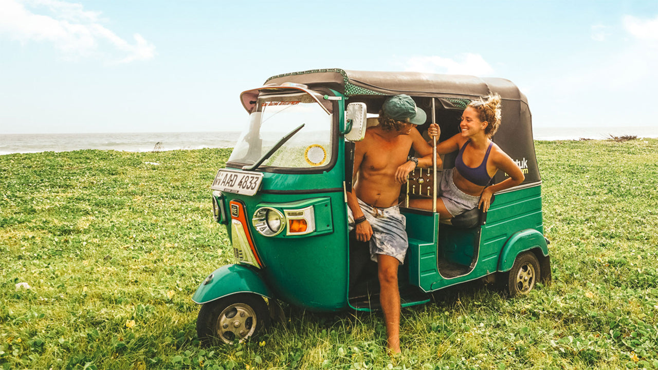 De makkelijkste manier om je in Sri Lanka te verplaatsen en contact te maken met het lokale leven is per tuktuk. Je kunt je surfplanken erop vastmaken (op een brommer is dat tegenwoordig illegaal) en maximaal drie personen plus de bestuurder meenemen.