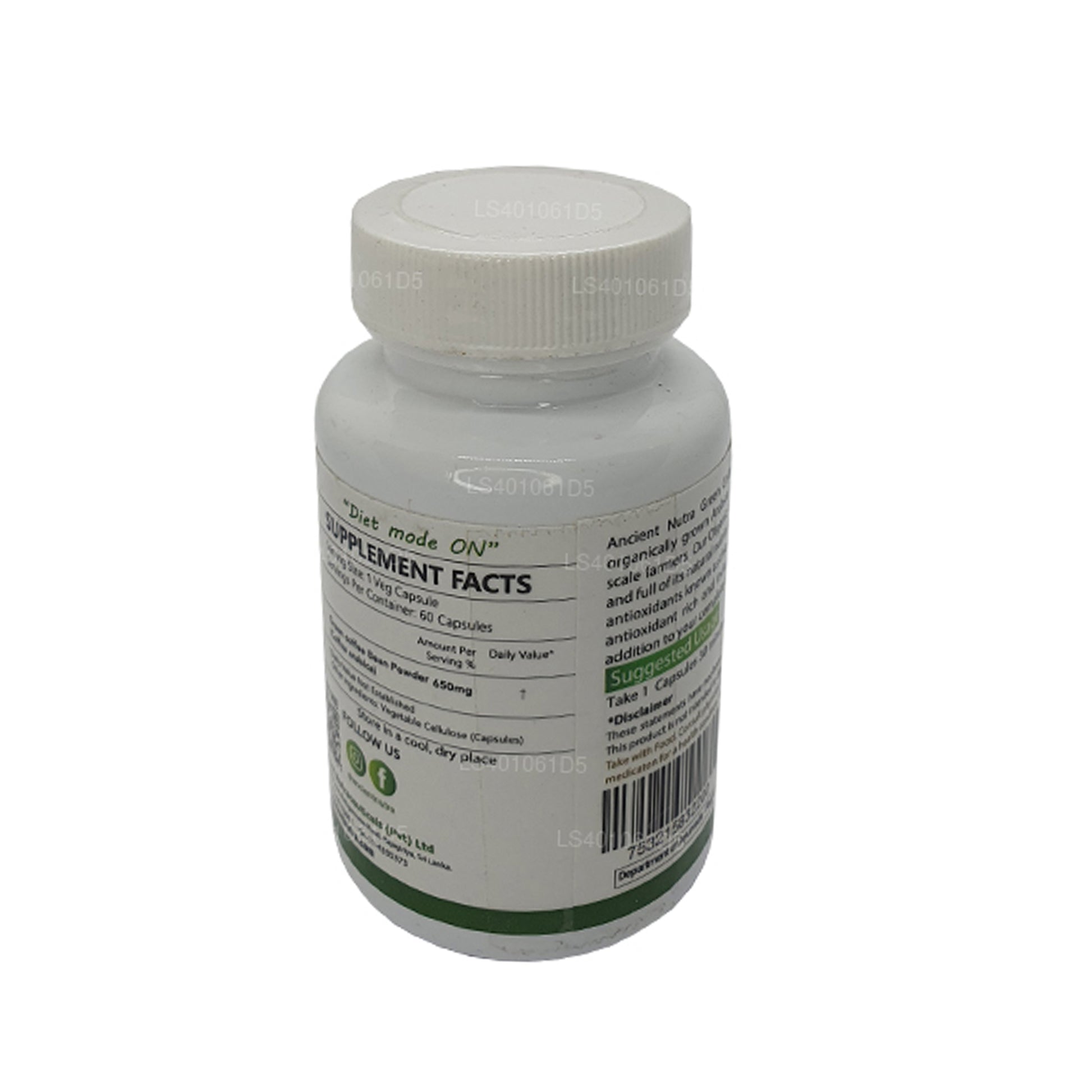 (SKU: LS401061D5) De Green Coffee Bean-capsules van Ancient Nutra bieden een geconcentreerde bron van antioxidanten, bekend als chlorogeenzuur, dat de stofwisseling verbetert en de bloedsuikerspiegel reguleert en op zijn beurt helpt bij het afvallen. Groene koffiebonen zijn afgeleid van „groene” (d.w.z. ongebrande) koffiebonen en bevatten een overvloed aan voedingsstoffen die anders verloren zouden gaan tijdens het brandproces.