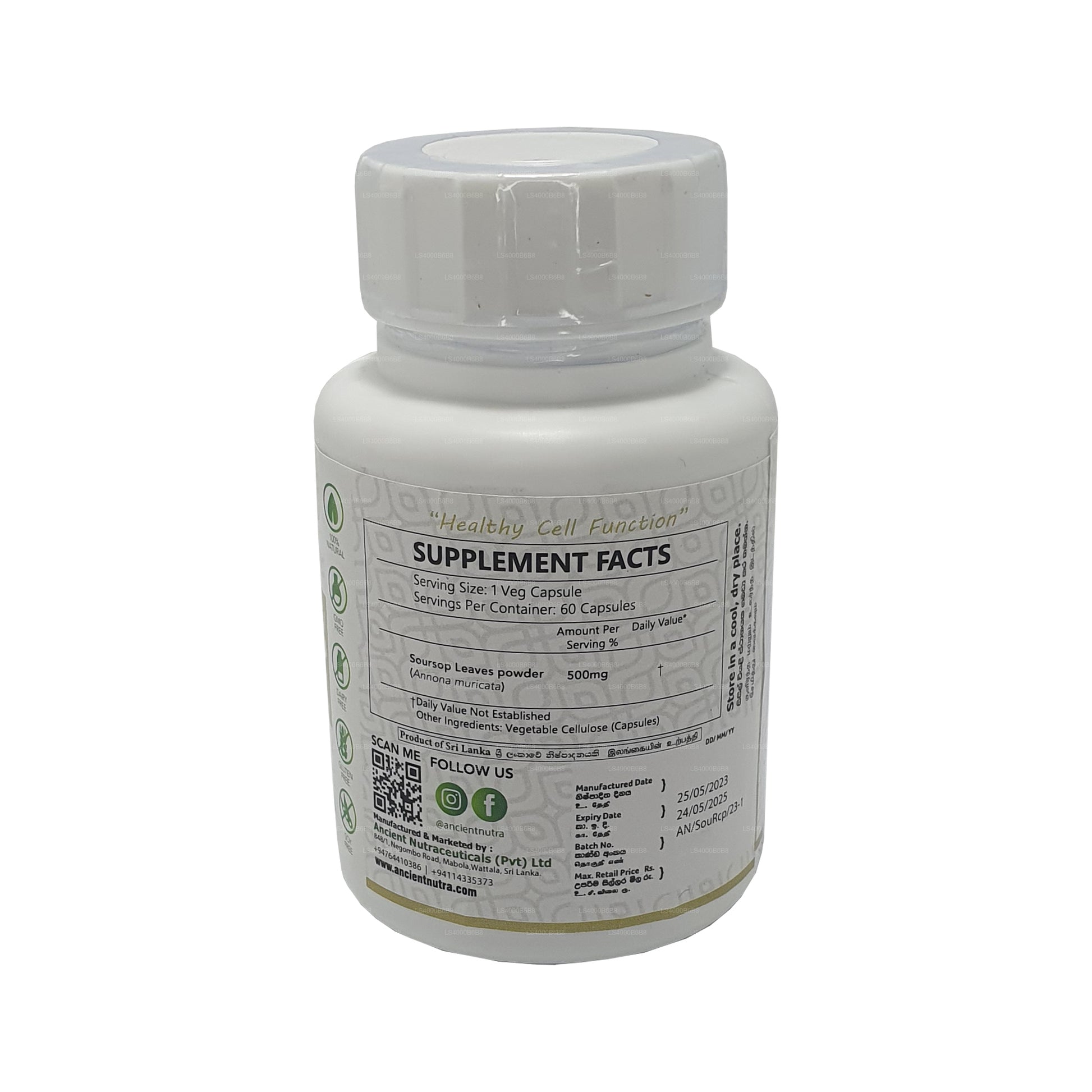 (SKU: LS4000B6B8) Ancient Nutra Soursop (60 capsules) biedt de potentiële gezondheidsvoordelen van zuurzakfruit in een handige en toegankelijke vorm. Met 60 capsules per fles is het een eenvoudige aanvulling op uw dagelijkse gezondheidsroutine en ondersteunt het de immuniteit en het algehele welzijn.