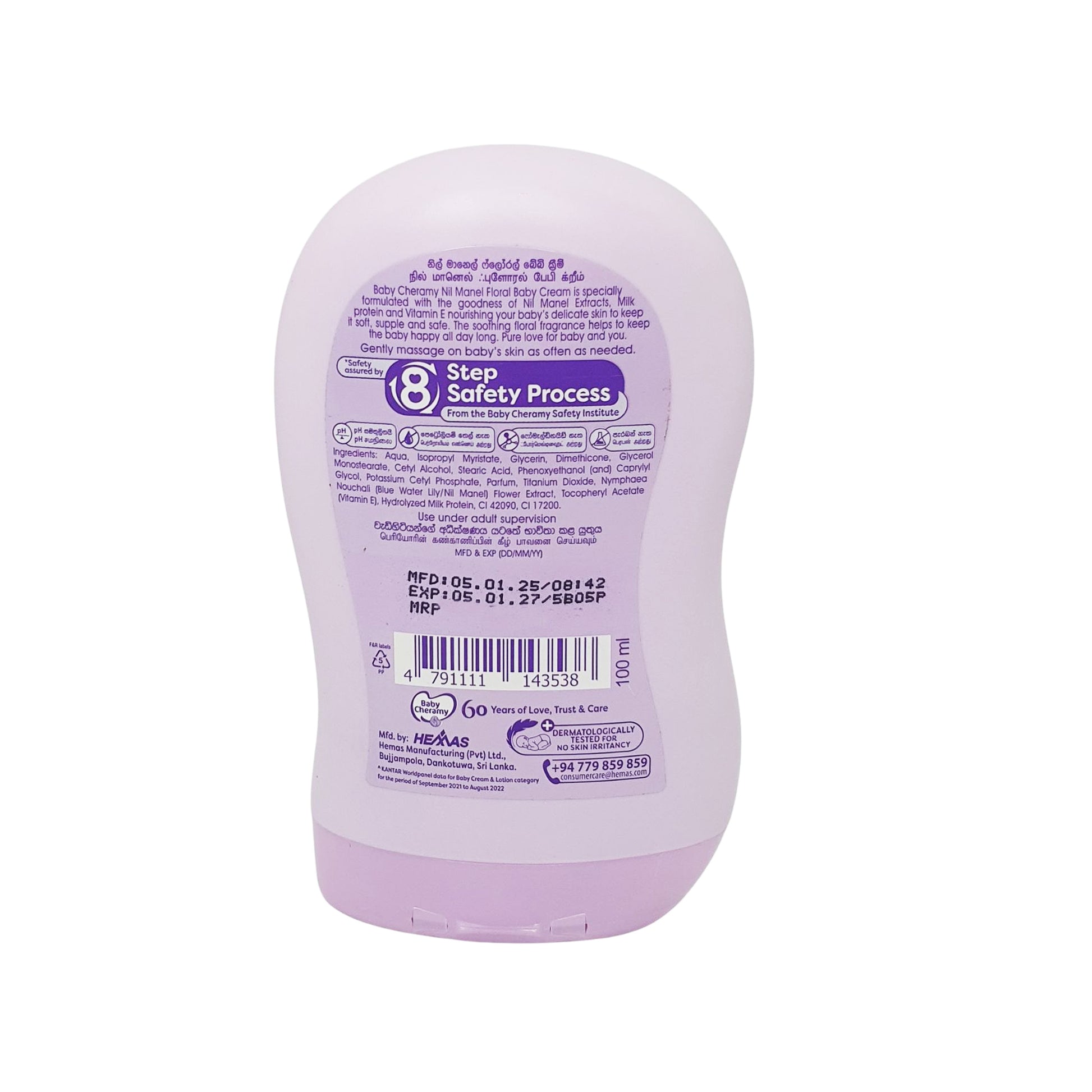 Maak kennis met Baby Cheramy Floral Baby Cream, een zachte formule verrijkt met Nil Manel-extracten, melk en vitamine E om de gevoelige huid van je baby te voeden en te beschermen. De crème hydrateert, kalmeert en maakt de huid zacht en soepel. De bloemige geur zorgt ervoor dat de baby zich de hele dag gelukkig voelt. Dermatologisch getest en hypoallergeen, veilig voor de gevoelige huid