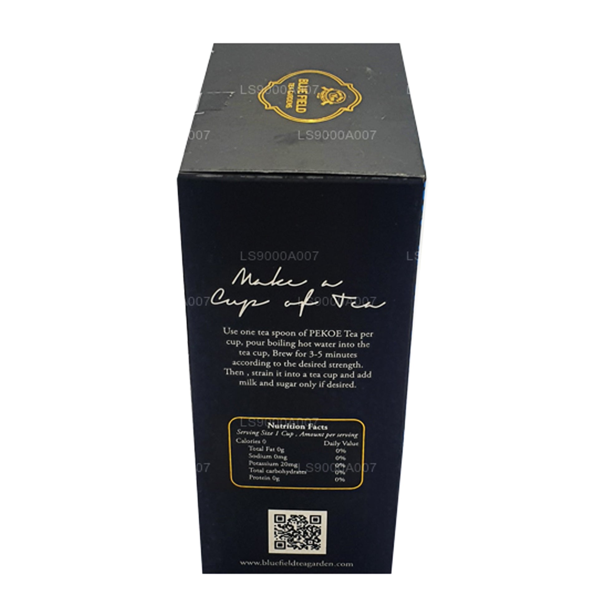 (SKU: LS9000A007) Een krullend blad met een lichte kop en een delicate smaak. Black Tea PEKOE van Bluefield wordt geteeld op hoge hoogtes op de prachtige theeplantage in Ramboda. Onze thee wordt geproduceerd door de handen van traditionele theemakers met behulp van een traditionele, orthodoxe methode voor de productie van zwarte thee. Het leeuwenlogo op de producten zorgt ervoor dat dit product 100% pure Ceylon-thee uit Sri Lanka is.