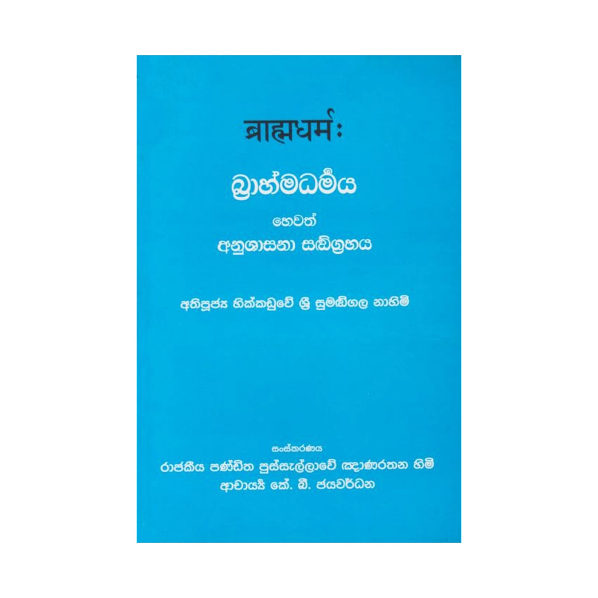 | Description | Brahma dharmaya Hewath Anushasana Sangrahaya by Ven. Hikkaduwe Sri Sumangala Nahimi |
