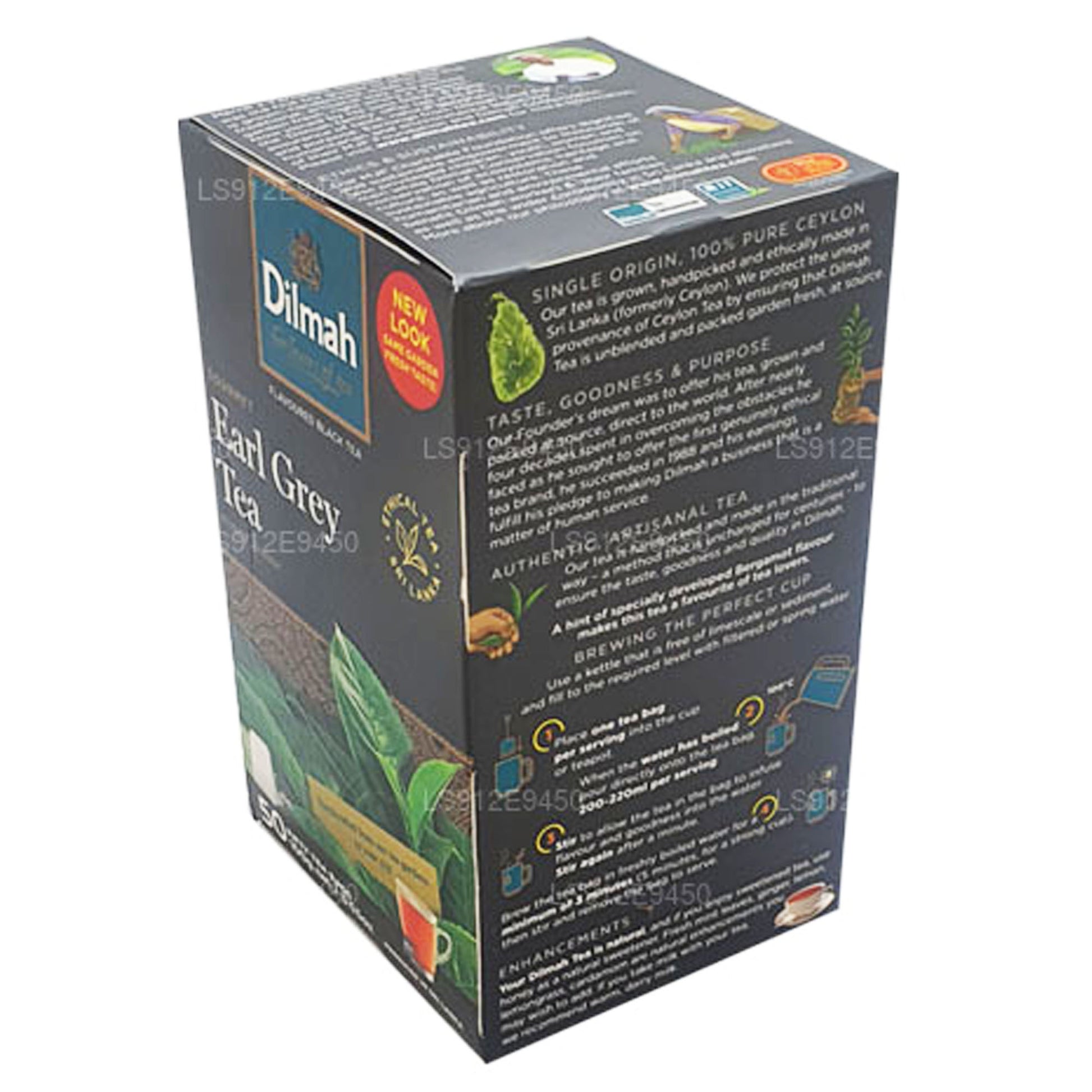 Dilmah Earl Grey Tea (100 g) met 50 theezakjes is een tijdloze Ceylon-mix van Ratnapura, die de gedurfde rijkdom van zwarte thee combineert met de citrusachtige elegantie van bergamot. Deze familiefavoriet staat bekend om zijn geurige aroma en verfrissende smaak en kan op elk moment van de dag worden genoten. Naast de heerlijke smaak biedt het ook gezondheidsvoordelen, waaronder het stimuleren van energie, het verbeteren van de immuniteit, het ondersteunen van de gezondheid van het hart, het bevorderen van de spijsvertering en het bestrijden van vrije radicalen met krachtige antioxidanten. Handig verpakt in theezakjes, levert het binnen enkele minuten de perfecte kop, waardoor het een geliefde keuze is voor theeliefhebbers over de hele wereld