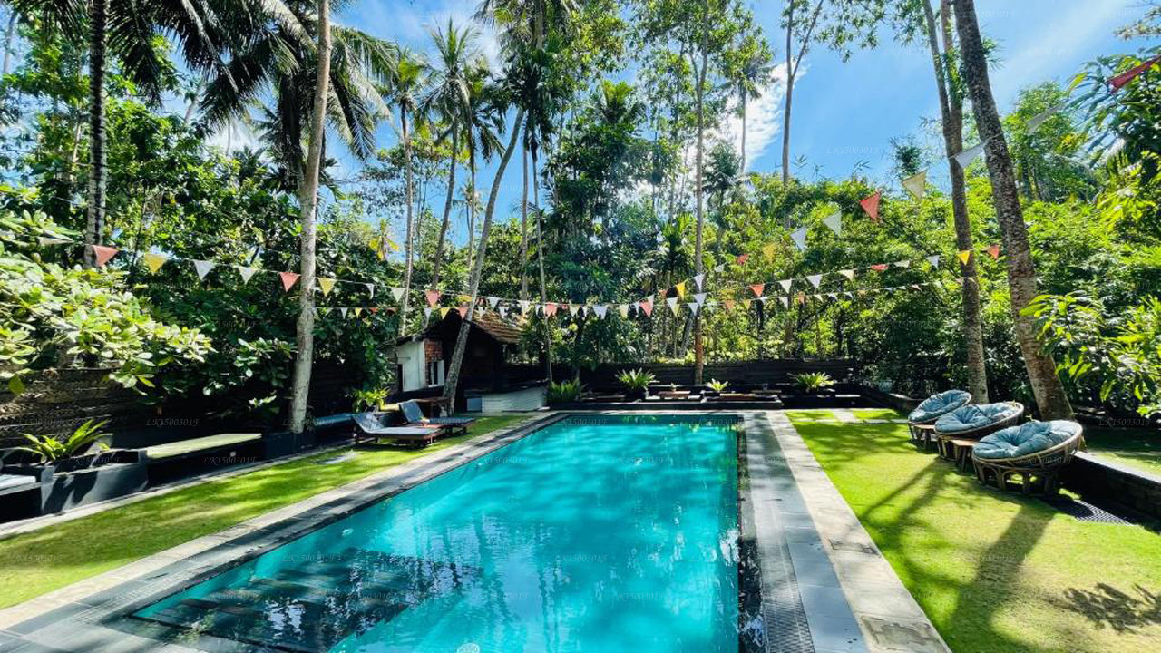 (SKU: LK1500301F)Nestled along the pristine shores of Dikwella, Dots Bay House offers a blissful coastal retreat. From cozy dormitories to beachfront bungalows, our accommodations embody a minimalist beach vibe. Enjoy fresh seafood at our beachfront restaurant, unwind in hammocks, and embrace the surf culture with our facilities, including surfboard rentals and yoga classes. Dots Bay House invites you to a laid-back haven, where the sound of waves and vibrant sunsets create an unforgettable experience on Sri Lanka's southern coast.