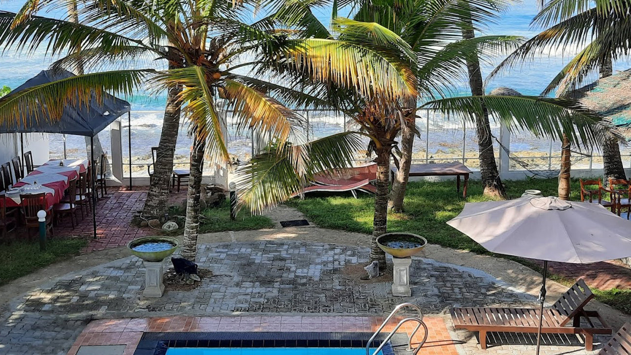 Facilities:Edelweiss Resort features an outdoor pool, a beachfront terrace, and a private beach area. Guests can enjoy on-site dining with Sri Lankan and continental cuisine, as well as barbecue arrangements. Additional services include free parking, Wi-Fi, airport shuttles, and laundry services. Spa services and massages are also available for added relaxation.