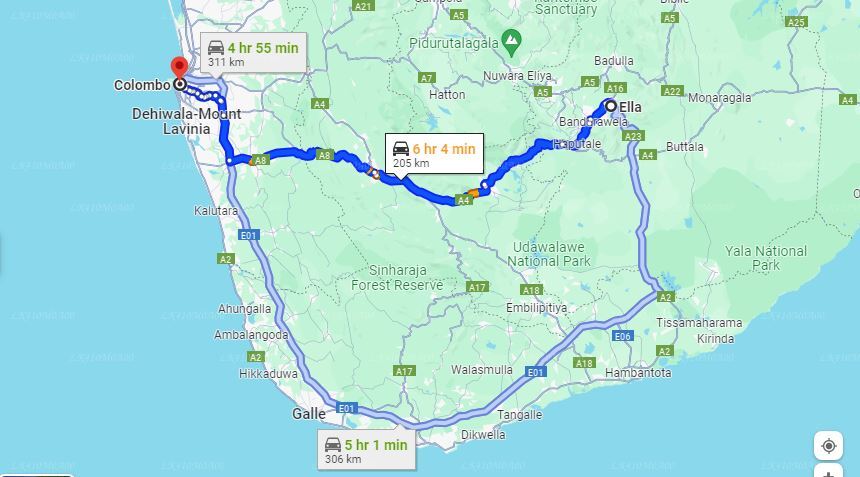 - Pick up within the city limits of Ella and drop-off at Colombo City Hotels.