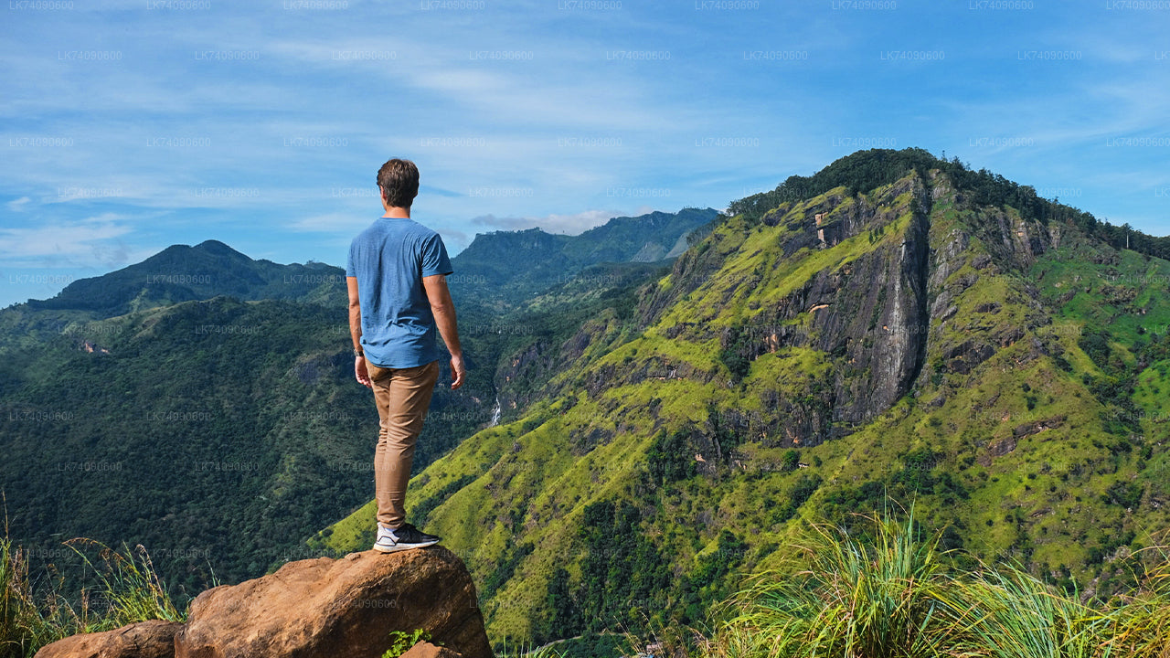 Begin aan de „Hiking Tour to Ella Three Icons” van Ella en ervaar het beste van de centrale hooglanden van Sri Lanka. Begin je avontuur om 7.00 uur met een ophaalservice vanaf je hotel in Ella, Wellawaya of Bandarawela. Begin om 8:00 uur je wandeling naar de prachtige Ella Rock, waar voor drankjes wordt gezorgd. Ga om 11.30 uur naar de pittoreske Demodara Nine Arch Bridge, een wonder van koloniale techniek. Geniet om 13.00 uur van een heerlijke lunch voordat je om 14.30 uur aan je laatste wandeling naar Little Adam's Peak begint. Geniet tijdens het stijgen van het adembenemende uitzicht en geniet van een verfrissend drankje op de top. Bekijk een betoverende zonsondergang vanaf de top en leg de schoonheid van de hooglanden vast. Sluit uw onvergetelijke dag af met een drop-off om 17.30 uur in uw hotel. Deze tour is perfect voor natuurliefhebbers en avonturiers en biedt een uitgebreide ervaring van Ella's iconische bezienswaardigheden op één dag.