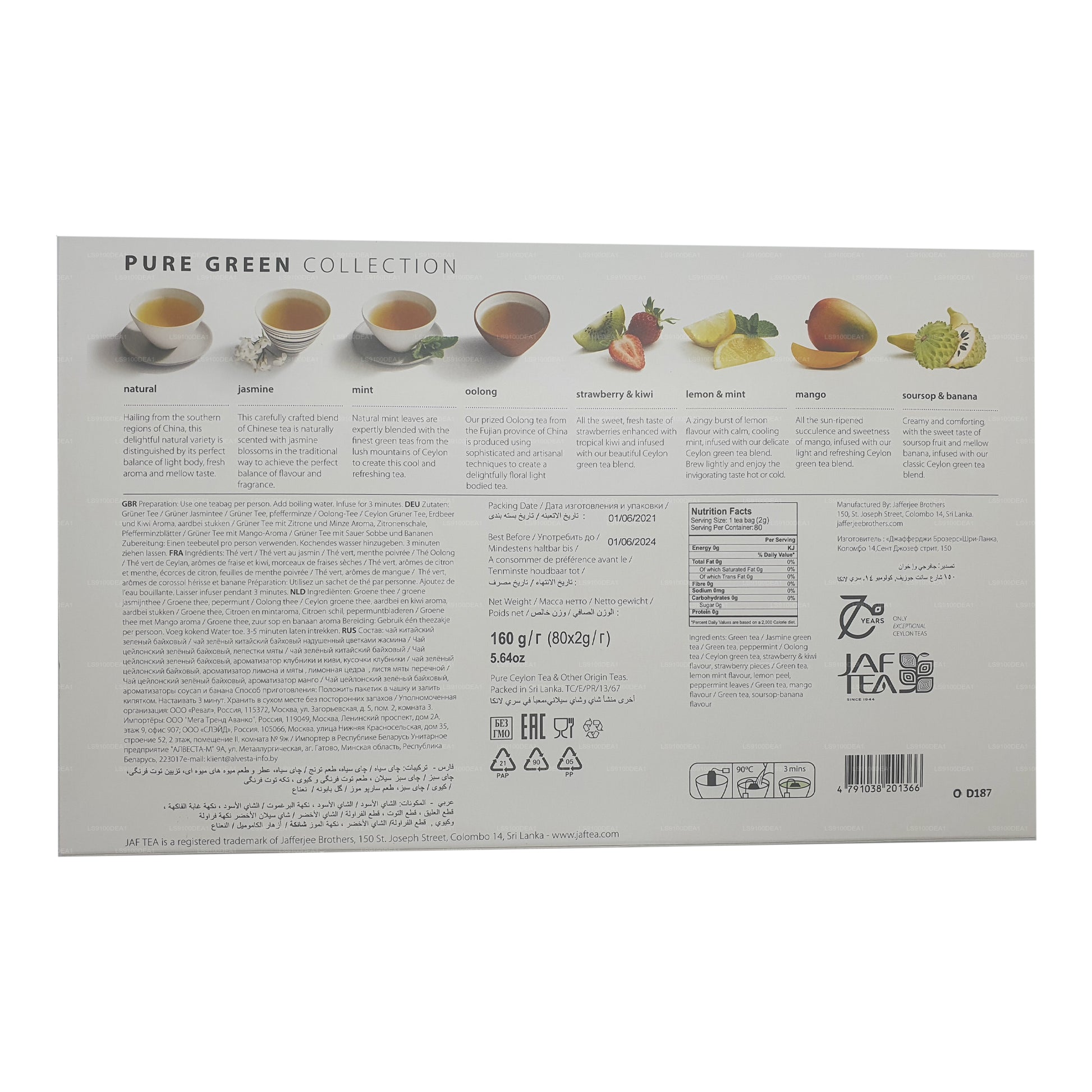 Jaf Tea Pure Green-collectie (160 g) 80 theezakjes