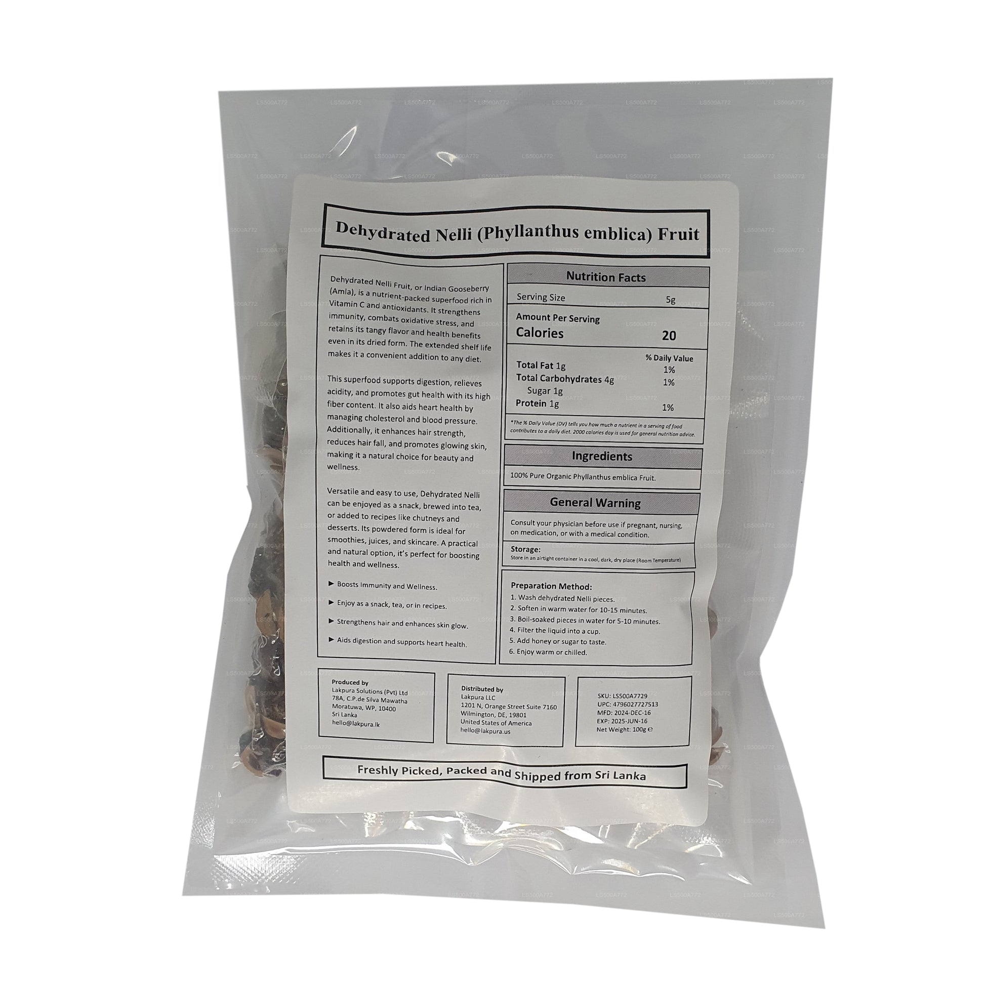 Lakpura Gedehydrateerde Nelli (Amla/Phyllanthus emblica) Vruchten