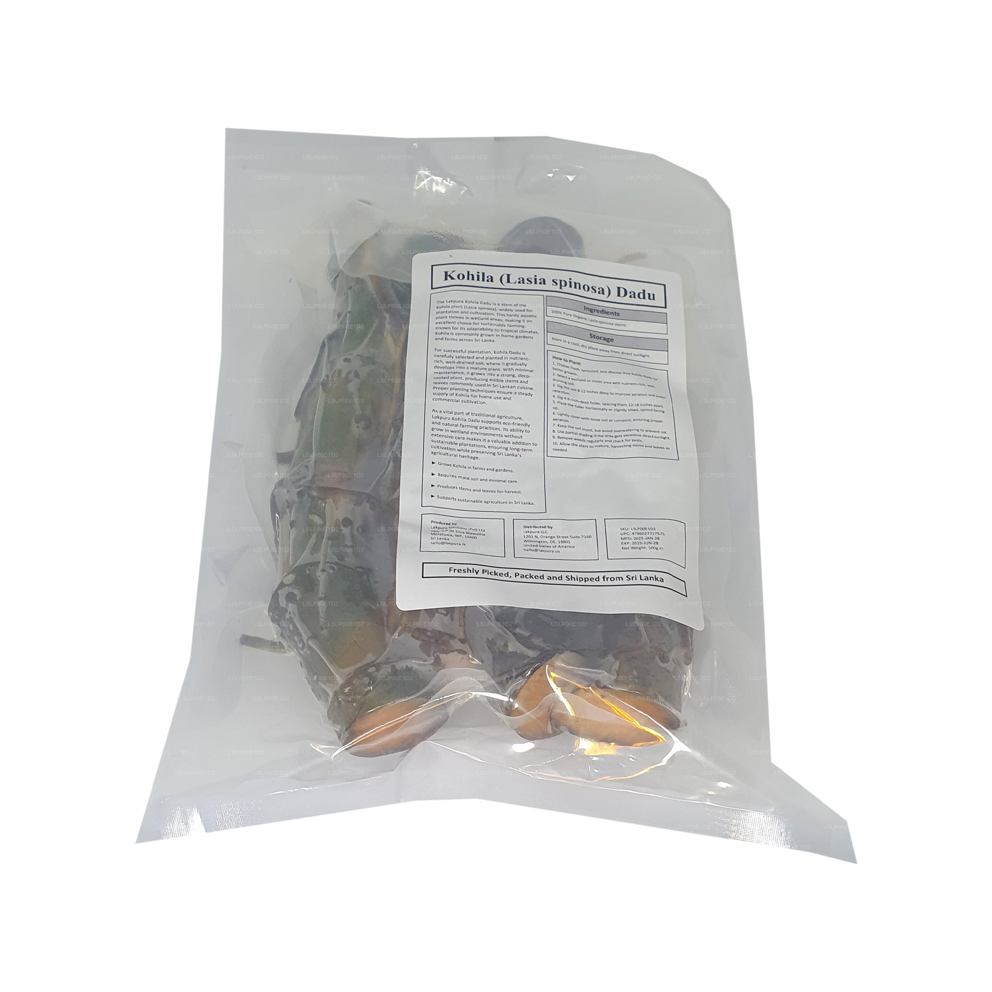 Lakpura Kohila Dadu (කොහිල දඩු) is a stem of the Kohila plant (Lasia spinosa) used for plantation. Thriving in wetlands, it grows into a hardy plant with minimal maintenance, making it ideal for sustainable farming and traditional Sri Lankan agriculture.