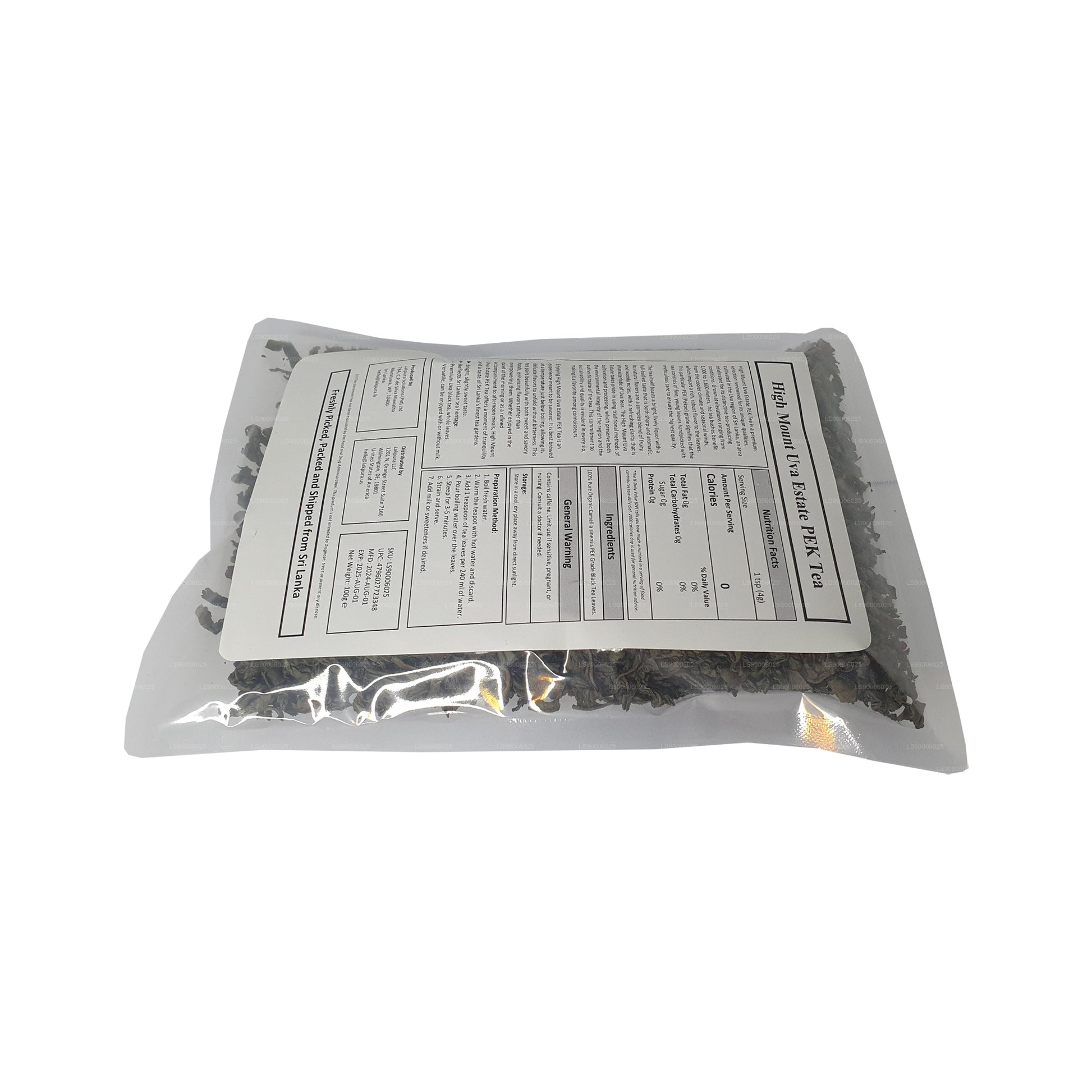 High Mount Uva Estate PEK Tea, geteeld in de beroemde Uva-regio van Sri Lanka, biedt een rijke, volle smaak met een mix van fruitige en houtachtige tonen, dankzij de groei op grote hoogte en traditionele verwerkingsmethoden. Deze hoogwaardige thee van Pekoe-kwaliteit, bekend om zijn scherpe, aromatische profiel, is ideaal voor mensen die een verfijnde thee-ervaring waarderen, past goed bij verschillende gerechten en perfect is voor elk moment van de dag