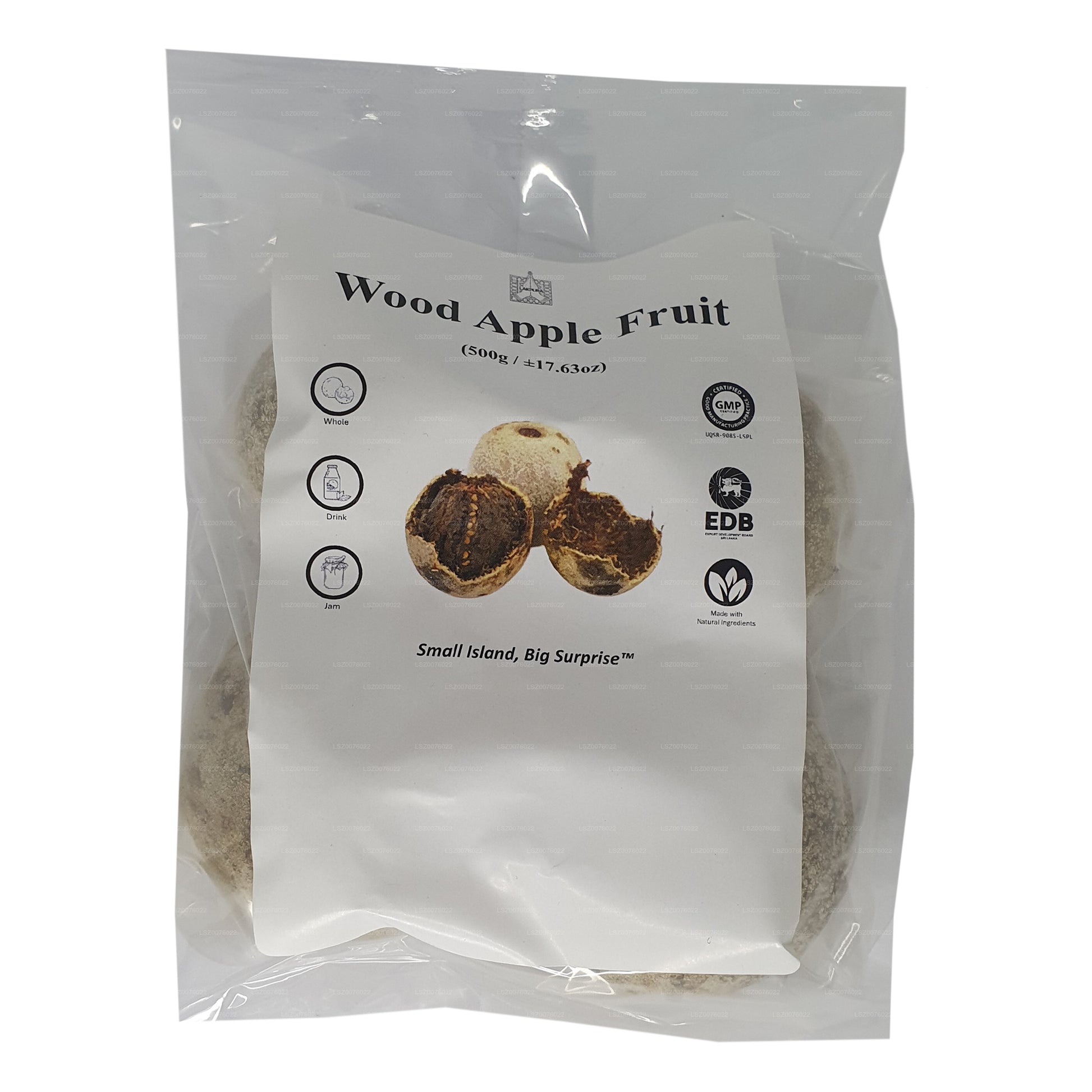 Lokaal bekend als houtappel (Limonia acidissima), dit is een tropische vrucht die inheems is op het Indiase subcontinent en Zuidoost-Azië. Veel voorkomende namen van Wood Apple omvatten ook olifantenappel of apenfruit. De vrucht zelf heeft een harde houtachtige plank, terwijl van binnen een zachtbruin vruchtvlees met witachtige zaden zit. Dit aromatische vruchtvlees is licht zoet, maar toch erg pittig en doet denken aan een unieke smaak die een mix kan zijn van tamarinde