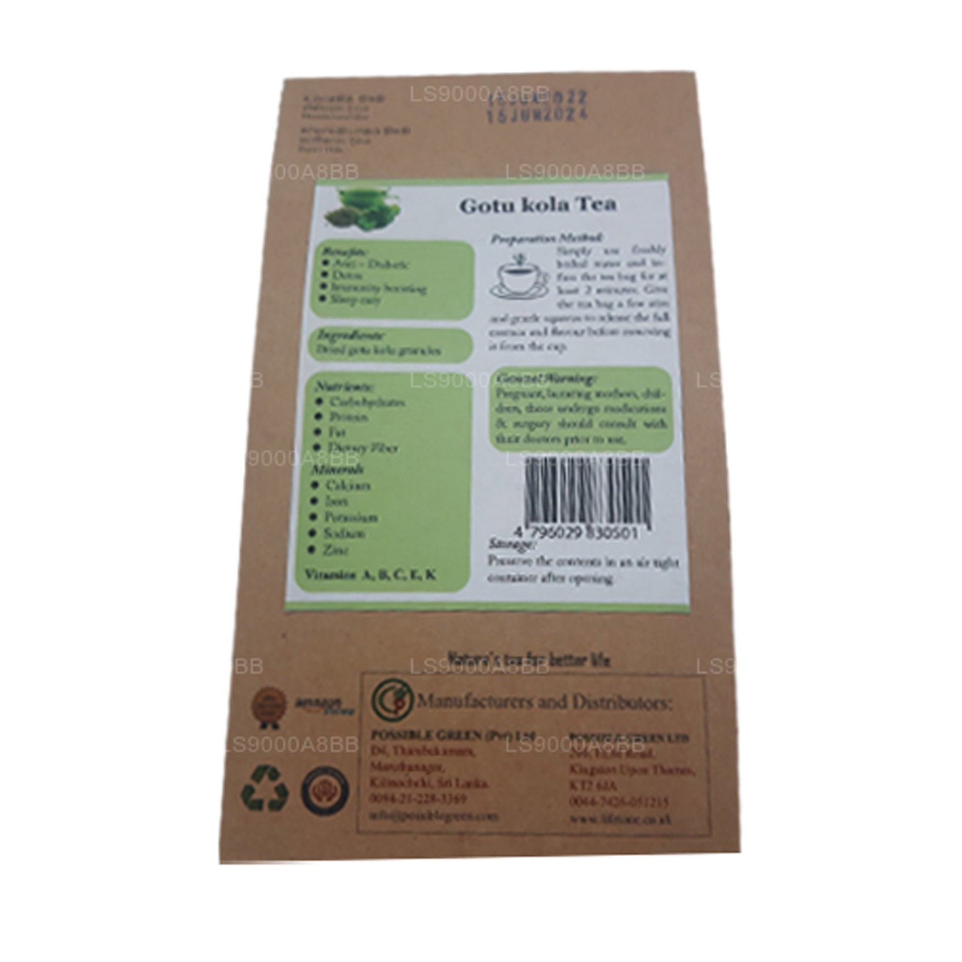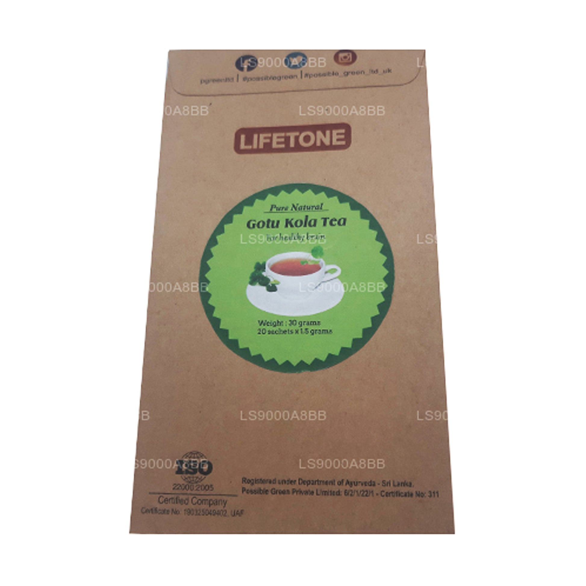 (SKU: LS9000A8BB) „Lifetone Gotukola Tea” is een kruidenthee gemaakt van de bladeren van de Gotu Kola-plant, wetenschappelijk bekend als Centella asiatica. Gotu Kola heeft een geschiedenis van traditioneel gebruik in de Ayurvedische en Chinese geneeskunde. De thee kan potentiële cognitieve ondersteuning bieden en werkt als een adaptogeen om het lichaam te helpen omgaan met stress. Bovendien wordt het geassocieerd met voordelen voor de gezondheid van de huid, waardoor de collageensynthese en wondgenezing worden bevorderd. Gotu Kola-thee is rijk aan antioxidanten en wordt verondersteld oxidatieve stress te bestrijden