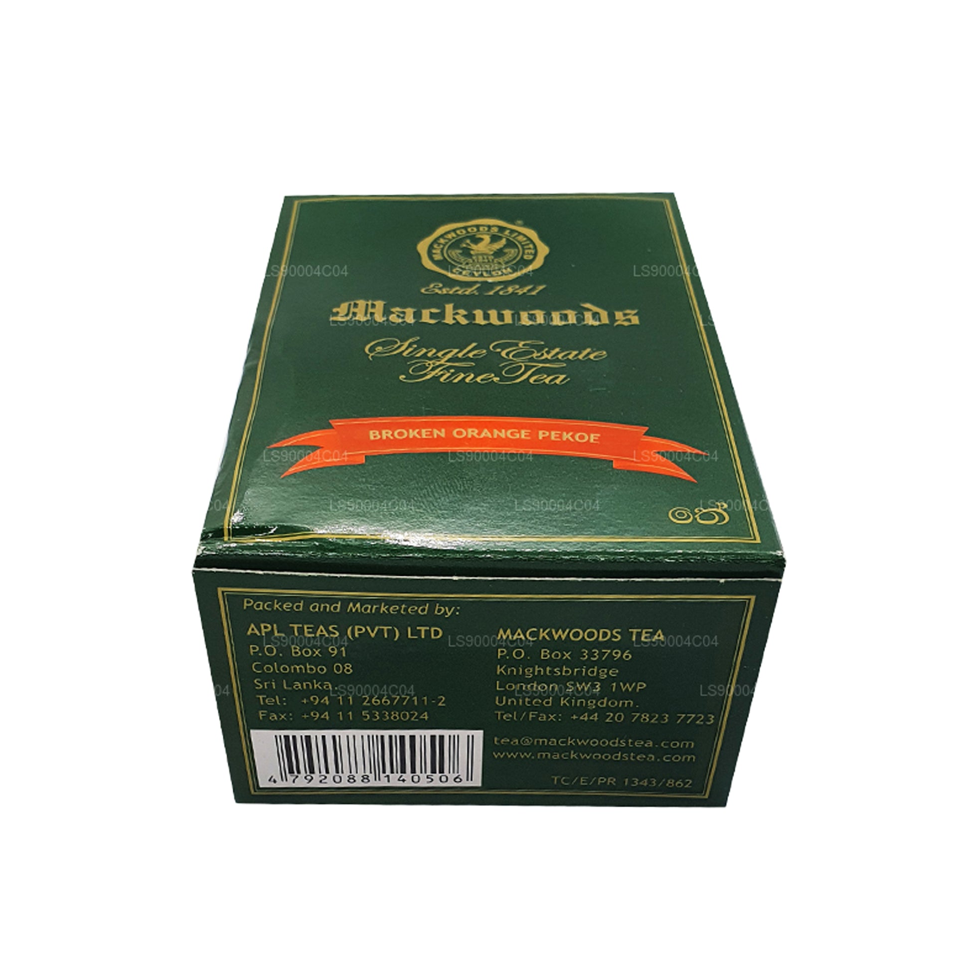 (SKU: LS90004C04) Pure Ceylon-thee is altijd favoriet geweest bij velen vanwege de voortreffelijke smaak, geur en kleur. De Mackwoods Single Estate Pure Ceylon Tea - Broken Orange Pekoe biedt dezelfde intense smaken waar je echt van zou genieten. Pure Ceylon-thee, aangeboden door Mackwoods, wordt geteeld, geplukt en verwerkt in Sri Lanka, terwijl de term Orange Pekoe een manier betekent om het theeblad te sorteren, waarvan vaak wordt gedacht dat het een sinaasappelsmaakprofiel geeft. Orange Pekoe of OP betekent de hoogste kwaliteit zwarte thee die voornamelijk wordt geproduceerd in Sri Lanka en andere Zuid-Aziatische regio's