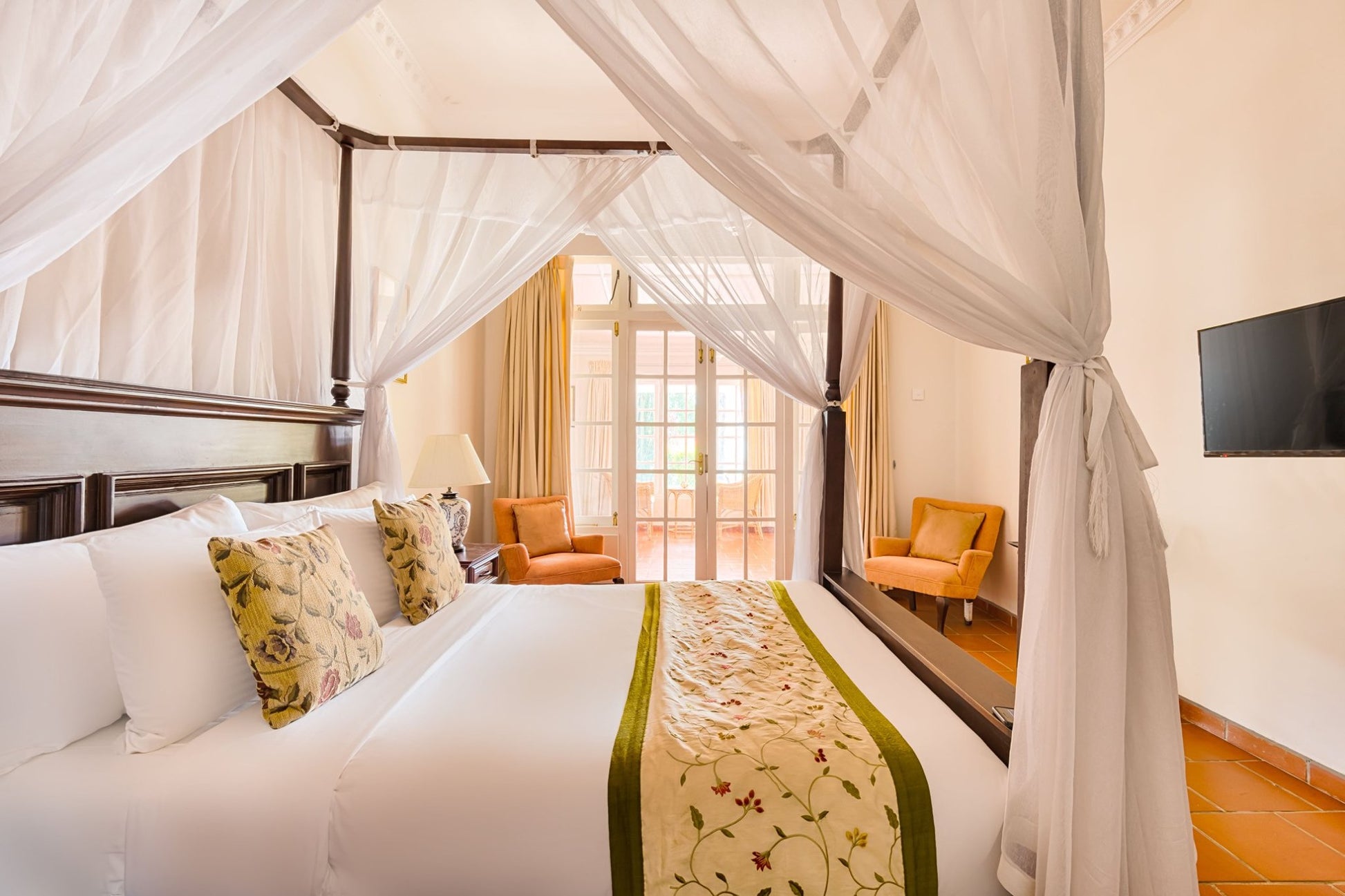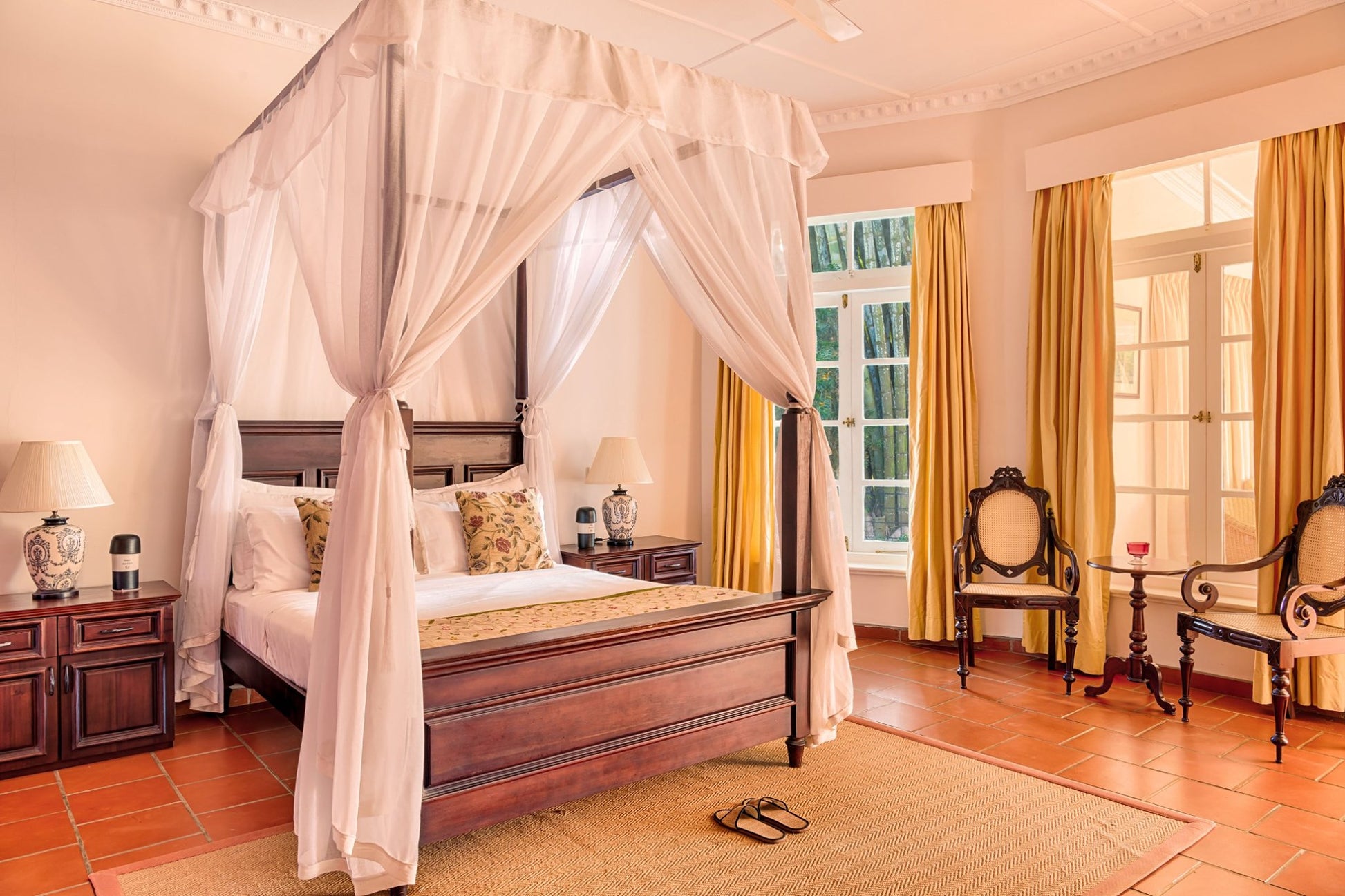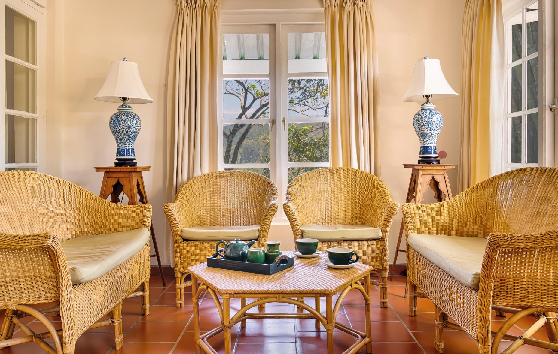 The bungalow features charming rooms furnished with classic touches and modern comfort. Each room includes cozy bedding, private bathrooms, and tasteful interiors reflecting colonial elegance, along with views of gardens or tea fields.
