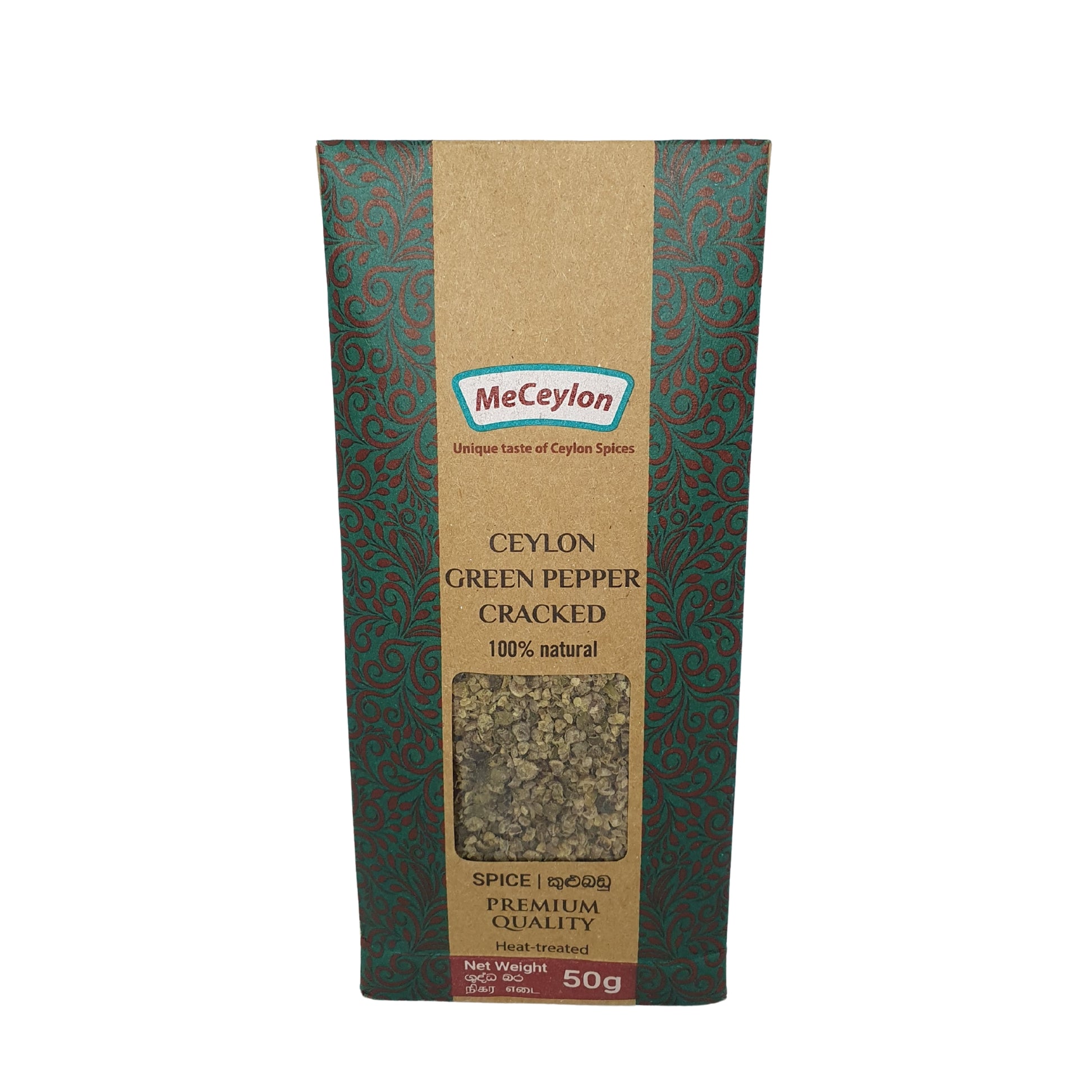 Me Ceylon Ceylon Green Pepper Cracked bevat onrijpe Piper nigrum-bessen die vroeg zijn geoogst om hun frisse, knapperige smaak te behouden, en vervolgens zachtjes gekraakt om aromatische oliën vrij te maken zonder dat ze tot een fijn poeder worden vermalen. Het is milder en minder scherp dan gerijpte peper en biedt knapperige, licht fruitige tonen die zeevruchten, sauzen, salades en lichte gerechten versterken. Deze gekraakte groene paprika, geproduceerd door Meceylon met behulp van duurzame inkoopmethoden in Sri Lanka, brengt heldere, genuanceerde warmte in uw keuken. Ideaal voor fijnproevers en chefs die op zoek zijn naar zuivere, aromatische kruiden zonder toevoegingen