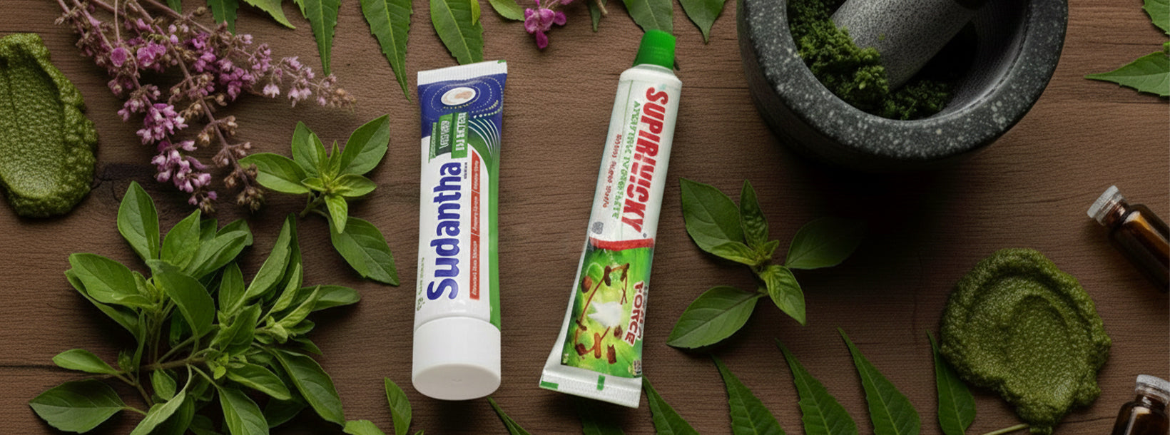 Ayurvedic toothpaste is a type of herbal toothpaste made from traditional Ayurvedic ingredients like neem, clove, and cinnamon, often excluding fluoride, gluten, and artificial ingredients. It is designed to promote oral hygiene by helping to fight plaque, reduce gum issues, and freshen breath