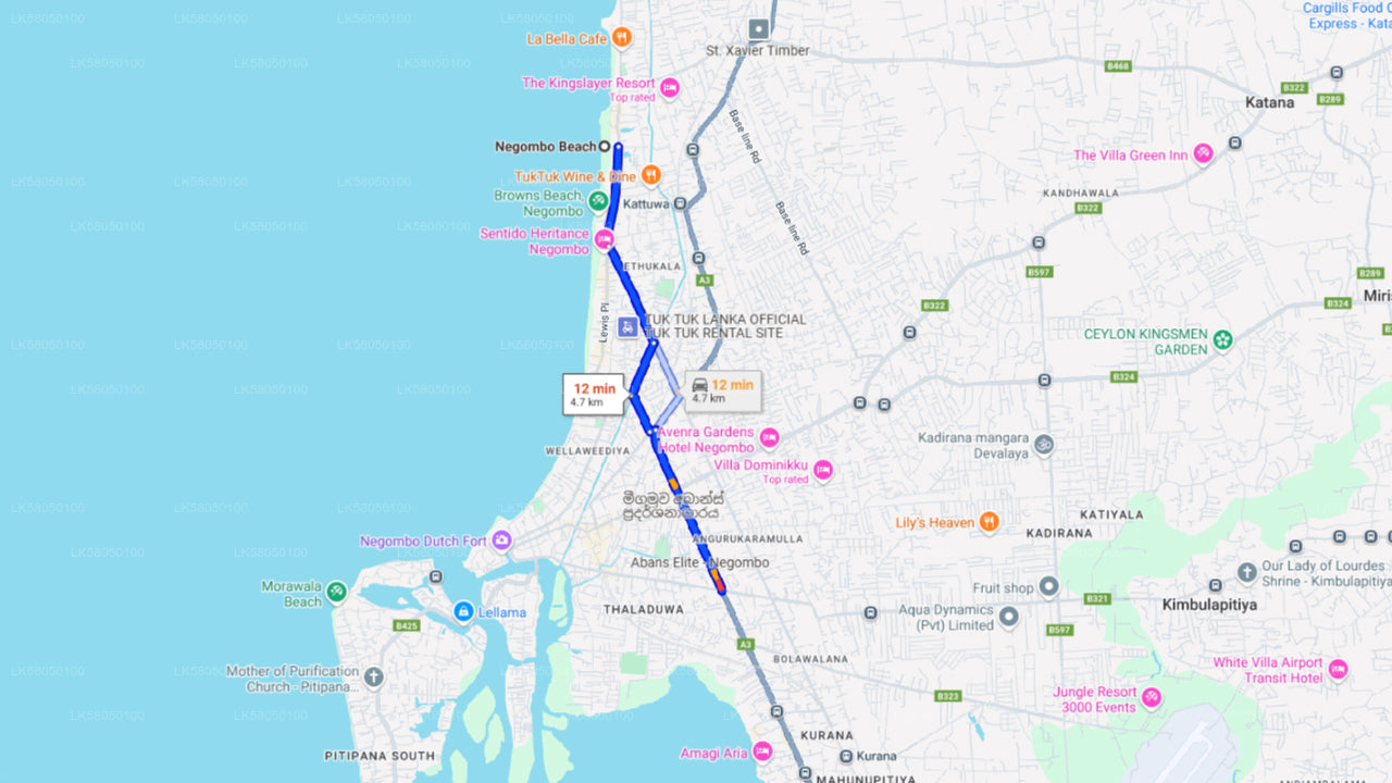 Privévervoer van Negombo City naar Colombo Airport (CMB)
