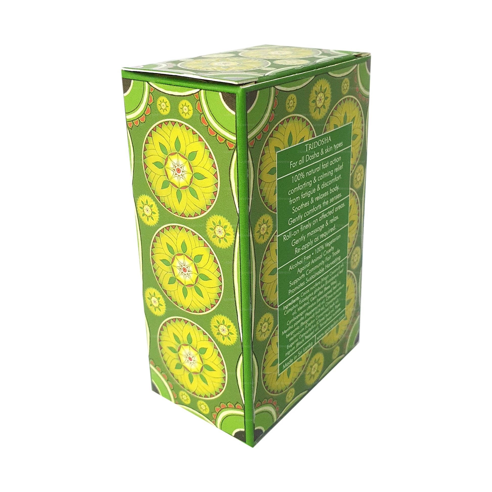 (SKU: LKZ0910147) 100% natuurlijke snelwerkende geruststellende verlichting van spierpijn, gewrichtspijn en verstuikingen. Verzacht pijn en spierspanning. Helpt de zintuigen zachtjes te kalmeren en te troosten. Gepresenteerd in vloeibare vorm, verpakt in een handige roll-on voor onderweg, om je lichaam, geest en ziel te kalmeren, zelfs als je onderweg bent. De verpakking is versierd met insignes geïnspireerd op de Royal Kandyan Courts van het oude Ceylon.