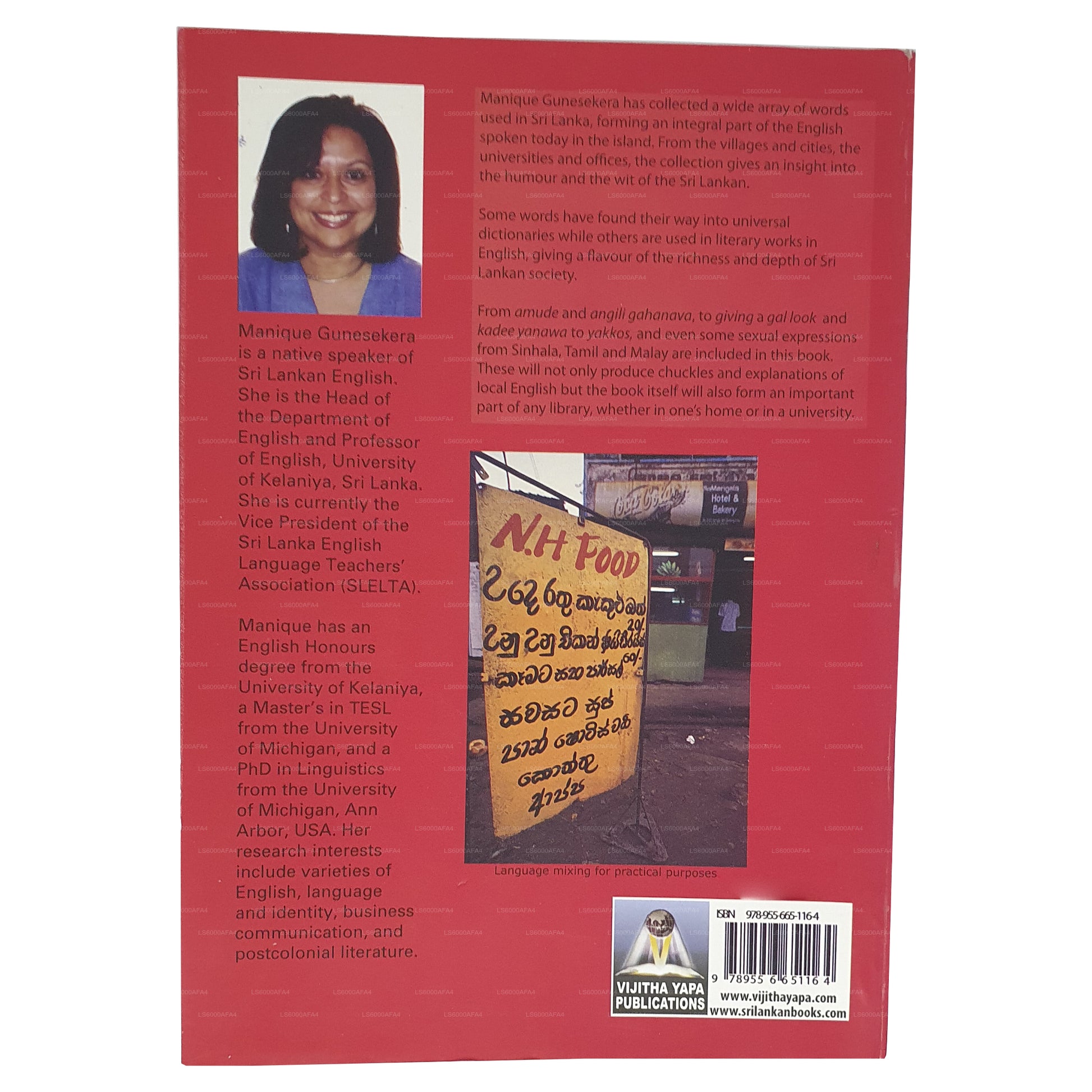 (SKU: LS6000AFA4) Sri Lankaans Engels, zoals gedocumenteerd door Manique Gunesekera, weerspiegelt de postkoloniale identiteit van Sri Lanka, waarbij Britse koloniale invloed wordt gecombineerd met de rijke culturele en taalkundige diversiteit van het land. Deze verzameling woorden en uitdrukkingen, afkomstig uit dorpen, steden, universiteiten en kantoren, toont de humor en humor van Sri Lankanen. Sommige van deze woorden hebben zelfs hun weg gevonden naar wereldwijde Engelse woordenboeken en worden gebruikt in literaire werken, die een kijkje geven in de diepte en rijkdom van de Sri Lankaanse samenleving. In wezen is Sri Lankaans Engels een bewijs van de culturele levendigheid en taalkundige creativiteit van het land
