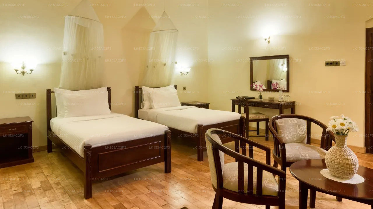 Thebuwana Bungalow in Kalutara offers a serene riverside escape surrounded by tropical gardens and coconut palms. This charming colonial-style retreat blends heritage, comfort, and warm hospitality in a peaceful setting.