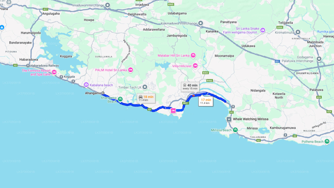 - Ophalen en terugbrengen van het hotel in Ahangama