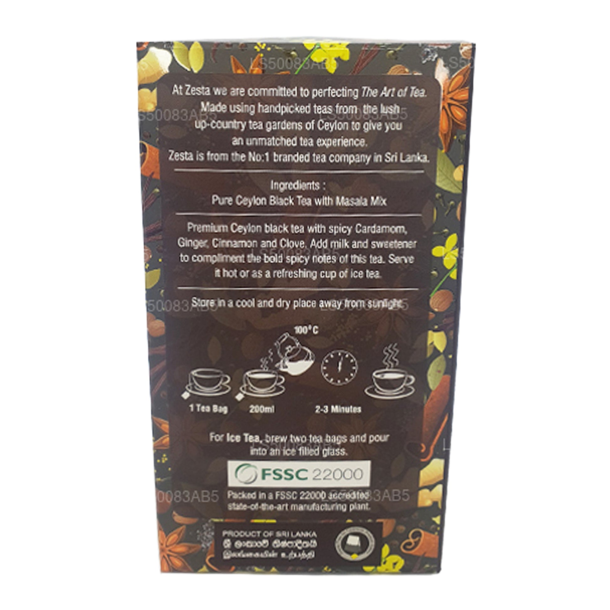 (SKU: LS50083AB5) Kruidige en fruitige theesoorten bieden een milde smaak, een uitstekend aroma en een subtiele zoetheid. De originele smaak van de klassieke kop zwarte thee van Ceylon wordt aangevuld met een combinatie van kruidige smaken. Ideaal voor ijsthee of als warme drank voor elk moment van de dag, deze spannende collectie wordt geleverd als nietjesvrije, individueel in folie verpakte theezakjes.